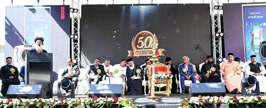സെന്റ് ഗ്രീഗോറിയോസ് ഇന്ത്യൻ ഓർത്തഡോക്സ് മഹാഇടവകയുടെ ആദ്യഫലപ്പെരുന്നാളിന്റെ സുവർണ്ണജൂബിലി ആഘോഷങ്ങളുടെ ഭാഗമായി, ഇന്ത്യൻ സെൻട്രൽ സ്കൂൾ അങ്കണത്തിൽ നടന്ന സമ്മേളനം ഭദ്രദീപം തെളിയിച്ച് ഉദ്ഘാടനം ചെയ്തുകൊണ്ട് സംസാരിക്കുകയായിരുന്നു പരിശുദ്ധ കാതോലിക്കാ ബാവാ.