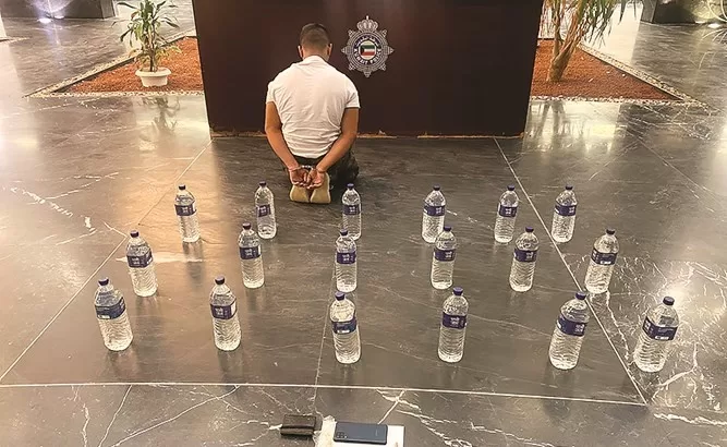 ജഹ്റയുടെ പ്രാന്തപ്രദേശത്ത് നിന്നാണ് ഇയാളെ പിടികൂടിയതെന്ന് അൽ-അൻബ ദിനപത്രം റിപ്പോർട്ട് ചെയ്തു . ഇയാളിൽ നിന്ന് 18 കുപ്പി നാടൻ മദ്യവും ഒരു യൂണിറ്റ് ഹാഷിഷും പോലീസ് പിടിച്ചെടുത്തു.